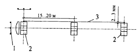 Рис. 7.2. Разметка положения фундаментных подушек: 1 — обноска; 2 — торцевые фундаментные подушки; 3 — причалка