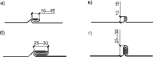 Рисунок 9.1 — Виды фальцев кровель из листовой стали: